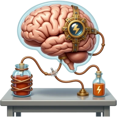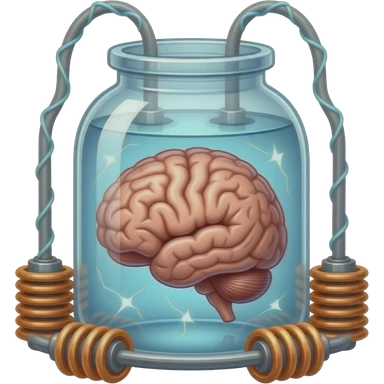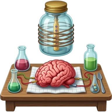 victorian style - a brain placed in medical preparations that is connected to an electrical circuit, a glass jar wrapped in high-voltage wires emoji | AI Emoji Generator