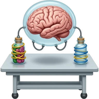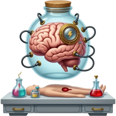 steampunk - a brain placed in medical preparations that is connected to an electrical circuit, a glass jar wrapped in high-voltage wires emoji
