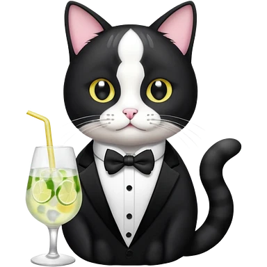 Tuxedo cat drinking gin tonic emoji