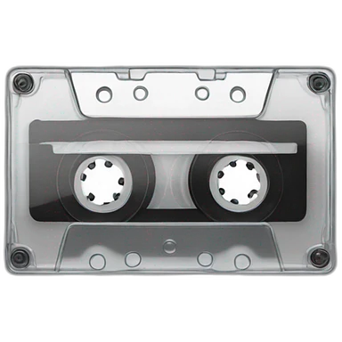 Anthropomorphized Cassette Tape: A classic cassette tape with wide eyes and a playful grin, holding its spools like little fists. Tape unravels from one side like an arm waving, ready to throw it back to the old-school jams. emoji