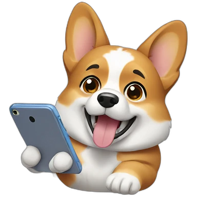 a boy watching videos on his phone while eating, cheerful expression emoji