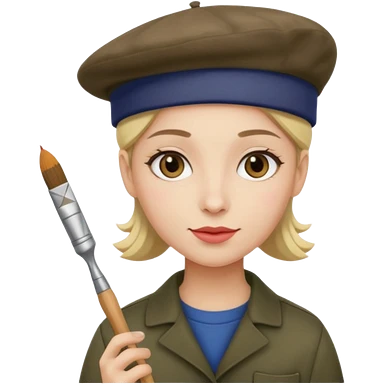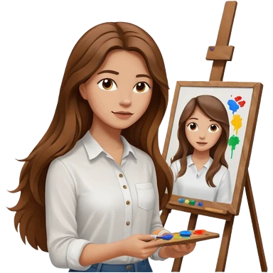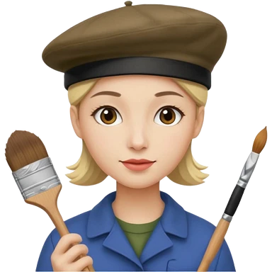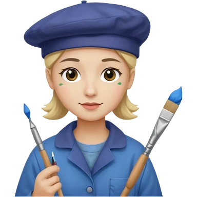 homme 50 ans cheveux frisé noir artiste peintre avec tablier d'art emoji