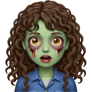 Emoji garota zombie com cabelo castanho escuro cacheado longo com franja cacheada sem volume emoji