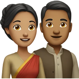 1 Vietnamese couple, the smiling man has white skin, neatly gelled undercut hair, black hair. The woman has long straight hair split 7:3 black, white skin emoji