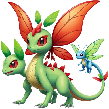 Celebi-Flygon-Trapinch-Vikavolt-Butterfree-Charmeleon-fusion (full body) emoji