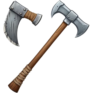 Viking with horned helmet and axe, fierce expression, Puy du Fou theme park emoji emoji