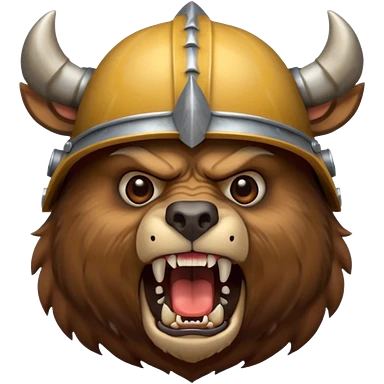 Viking Bear wearing horned helmet growling emoji | AI Emoji Generator