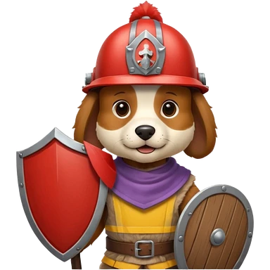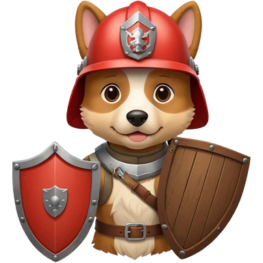 Viking Dog with silver helmet and wooden shield emoji | AI Emoji Generator