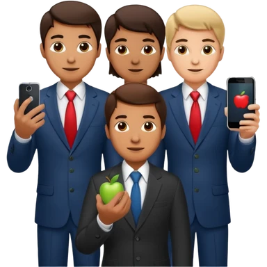 mobile phone man team of 3 people with apple logo emoji