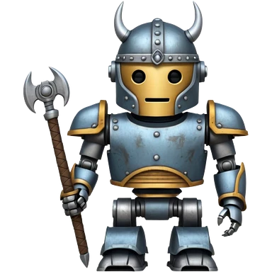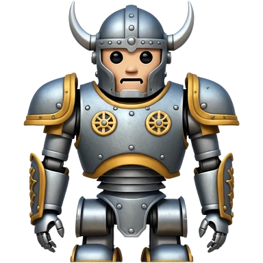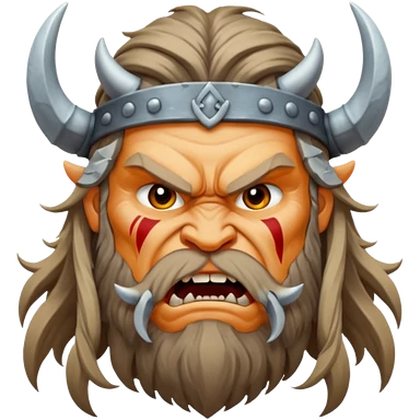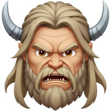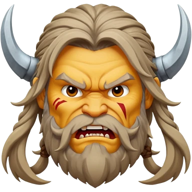 Viking emoji in Messenger style, yellow face, simple eyes, smiling, horned helmet emoji