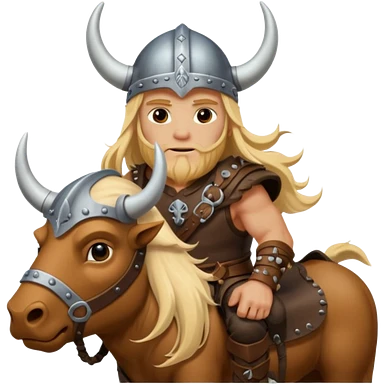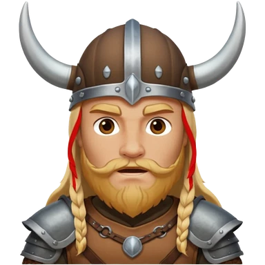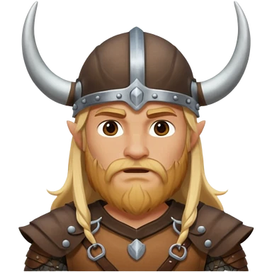 Viking emoji in Messenger style, yellow face, simple eyes, smiling, horned helmet emoji