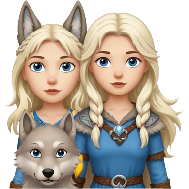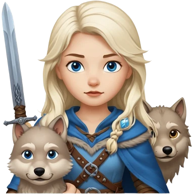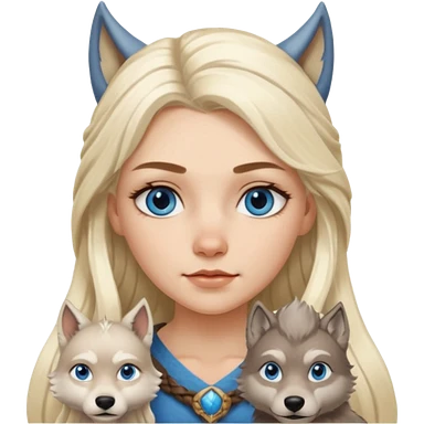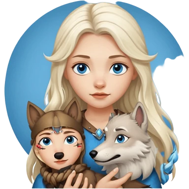 Viking platinum blonde girl with long hair and blue eyes. Wolf petViking platinum blonde girl with long hair and blue eyes. Wolf pet emoji