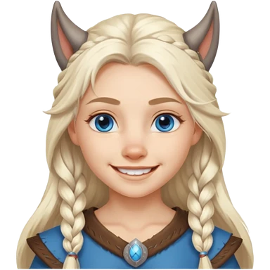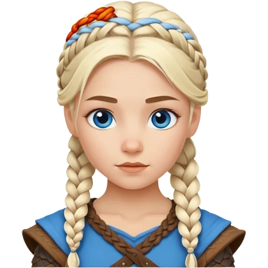Viking platinum blonde girl with braid and blue eyes. emoji