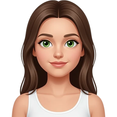 emogie style iphone jeune fille au cheveux lisse long et brun et aux yeux vert avec un débardeur blanc emoji