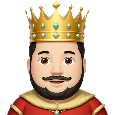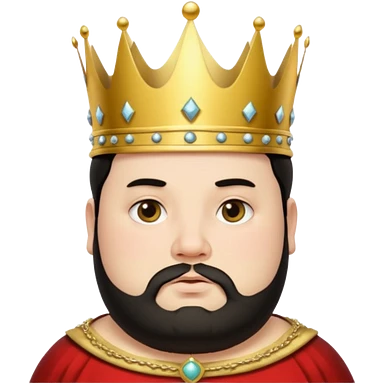 Bearded King, young fat king with short black beard, wearing crown emoji