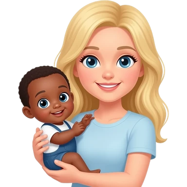 Blonde white woman holding African baby emoji