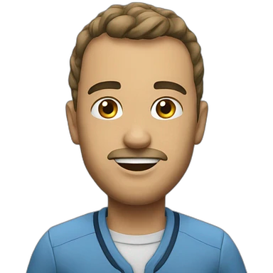 A man with sunglasses a blue suit and a white skin color and peace vingers emoji