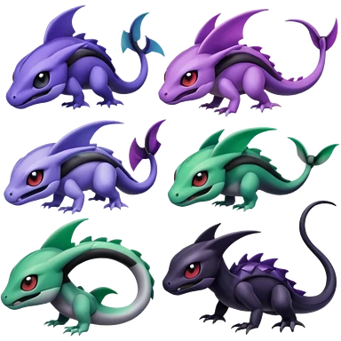 Violet-purple-black-white-gradients Meloetta-Rayquaza-Salandit-Pokémon-Fakémon-creature emoji