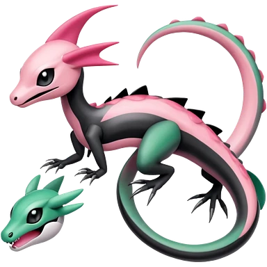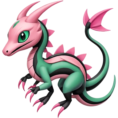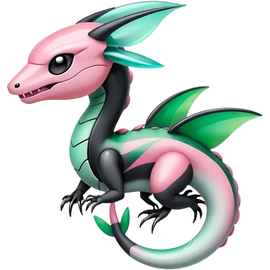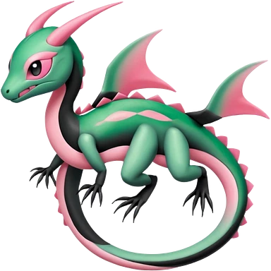 Pink-black-white-gradients Meloetta-Rayquaza-Salandit-Pokémon-Fakémon-creature-fusion-hybrid emoji