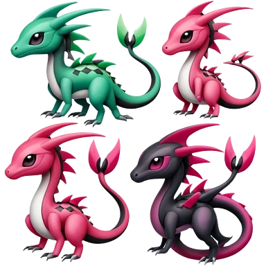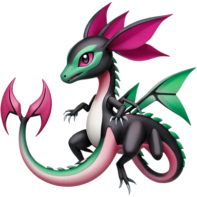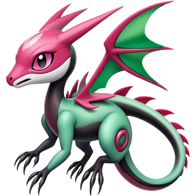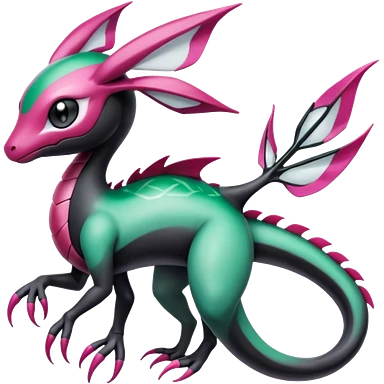 Magenta-black-white-gradients Meloetta-Rayquaza-Flygon-Gorebyss-Salandit-Pokémon-Fakémon-creature-fusion-hybrid emoji