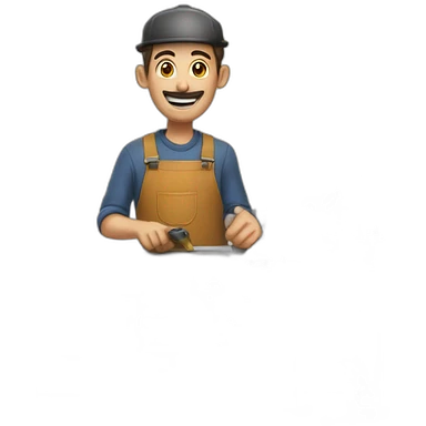 A skilled and proud craftsman, happily standing after building a house. Only the craftsman should be visible, and he may hold a drill or another tool related to his trade. emoji
