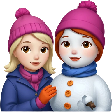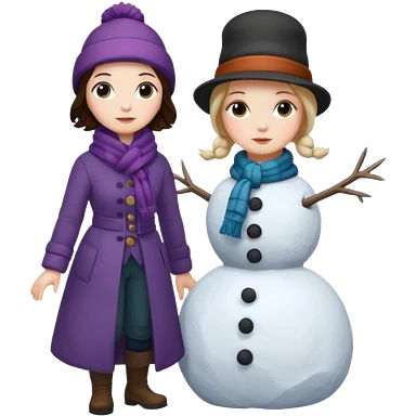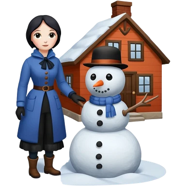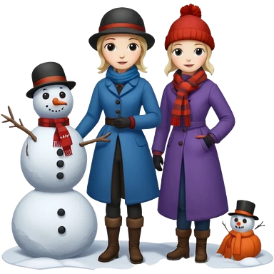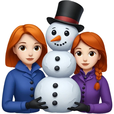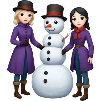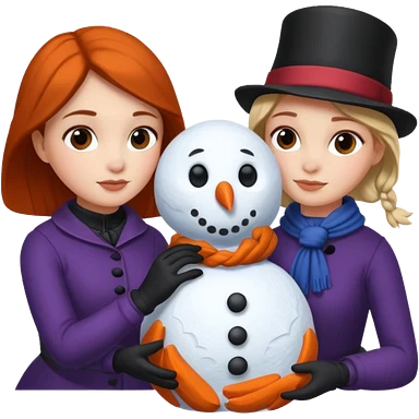Virginia Poe and Maria Clemm building a snowman emoji