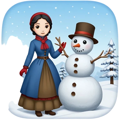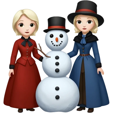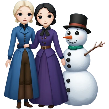 Virginia Poe and Maria Clemm 1800's full body building a snowman emoji