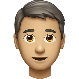 Un jeune homme avec un visage assez fin, yeux marron, peau beige, fine barbe et coiffure en dégradé avec cheuveux en haut légèrement sur le côté emoji