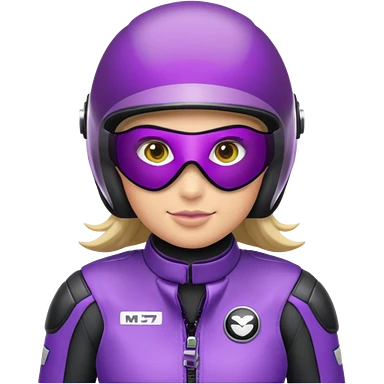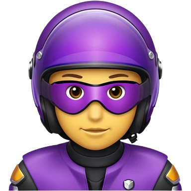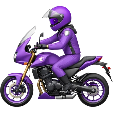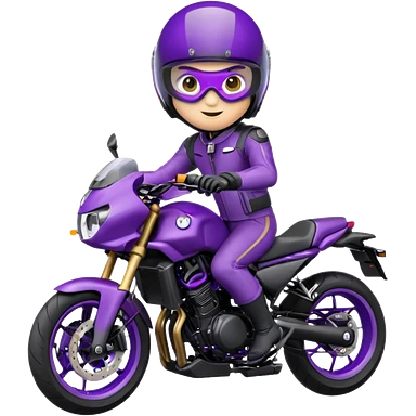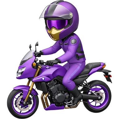 Créer un emoji avec une moto mt07 sport noir mate / violet iridescent très foncé, pare-brise de la moto violet. Avec une pilote dessus, visage masqué par la visière violette . Avec en arrière plan cercle violet. emoji