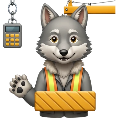a joyful gray wolf sits on a tower crane and controls it with his paws emoji