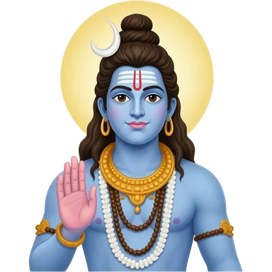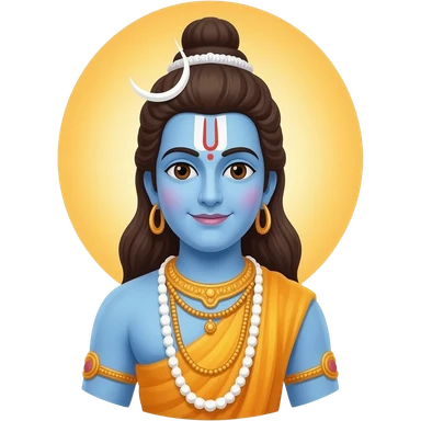 lord vishnu, shoulder length black hair, wearing crown, holding conch and chakra, blue color skin emoji