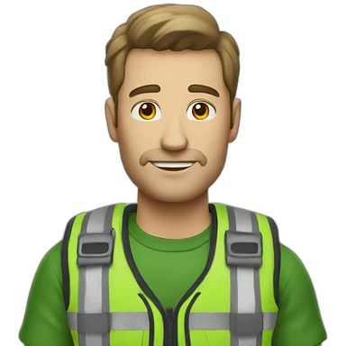 meester frank visser white hair, white mustache and glasses. Nice green suite emoji