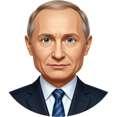 Vladimir Putin, 4K photo-realistic, round face, lifelike skin and features, polished finish, cool expression, clean background emoji