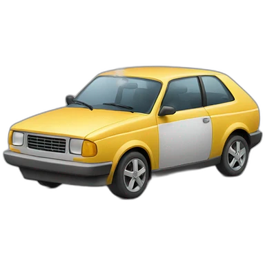 Une voiture avec un éléphant sur le capot, une tortue sur le toit , un lièvre dans le coffre et une souris qui conduit. La voiture sera de couleur violet,jaune,bleu,vert et orange emoji