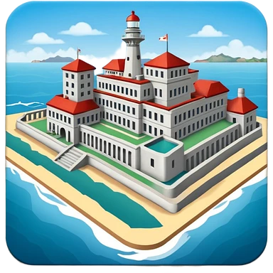 realistic emoji of San Francisco, wide city view with Golden Gate Bridge, Transamerica Pyramid, Chase Center, Embarcadero, Ghirardelli Square, Alcatraz, Bay Bridge, Coit Tower, UC Berkeley belltower, Stanford Hoover Tower, lifelike detail, accurate colors, bright daytime, no sky, no clouds emoji