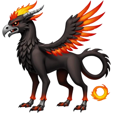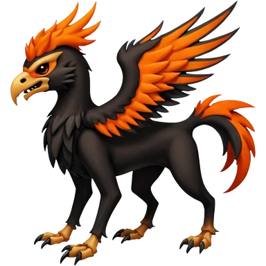 Volcanic Blazing Fiery Evil Skeletal Beaky Feathery Hot Cool Houndoom-Gryphon-fusion (full body) emoji | AI Emoji Generator
