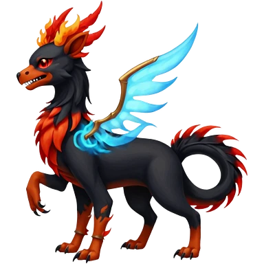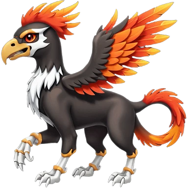 Volcanic Blazing Fiery Evil Skeletal Beaky Feathery Hot Cool Houndoom-Gryphon-fusion (full body) emoji