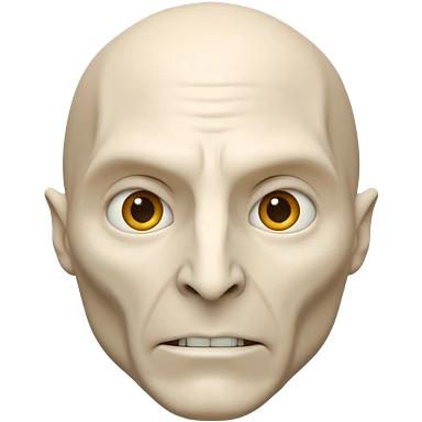 3D emoji of Lord Voldemort's face with pale skin, no nose (flat snake-like nostrils), sharp cheekbones, and intense eyes in glossy emoji style. emoji