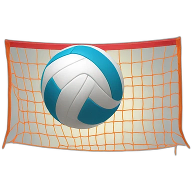 A close-up volleyball net with a ball hovering above it, set against the backdrop of a sandy volleyball court. The scene highlights the tension of an impending play, with the court lines clearly visible and a bright, sunny atmosphere surrounding the action. emoji