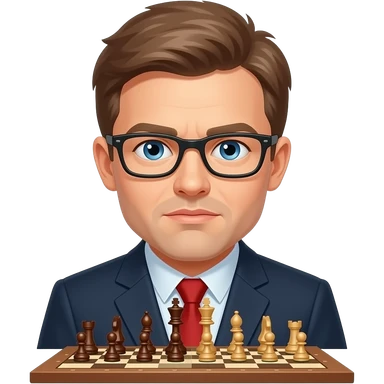 Magnus Carlsen che gioca a scacchi, ha una faccia seria emoji
