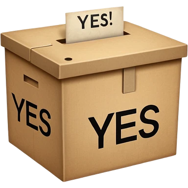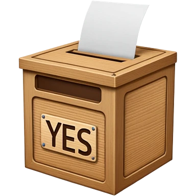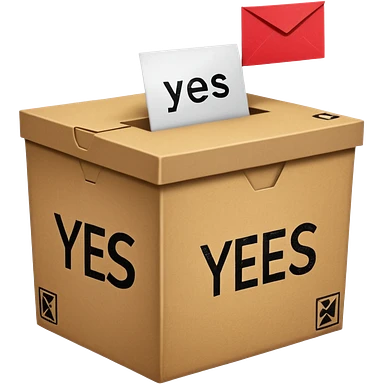 Vote box with "yes, but" aber' written on the front and paper entering the top slot emoji | AI Emoji Generator