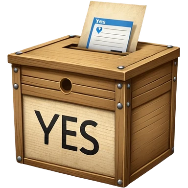 Vote box with 'Vote' written on the front and paper entering the top slot emoji