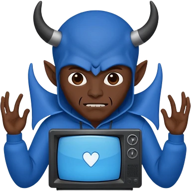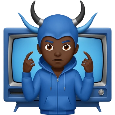 Vox the demon with a TV as his head wearing all blue emoji | AI Emoji Generator