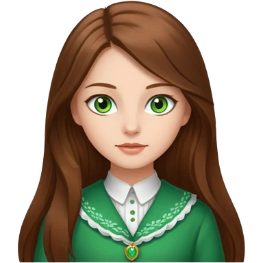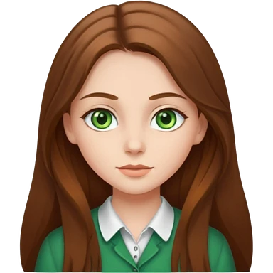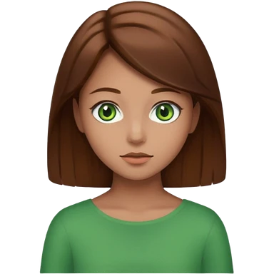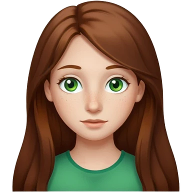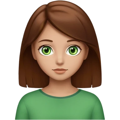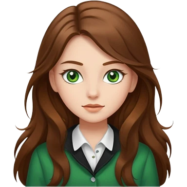Vull una noia amb els cabells marró llargs, ulls verds i roba molt maca emoji | AI Emoji Generator