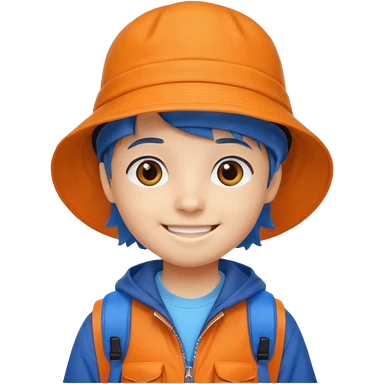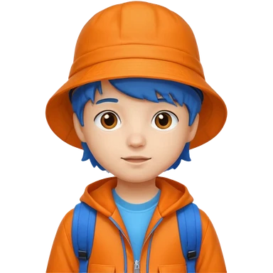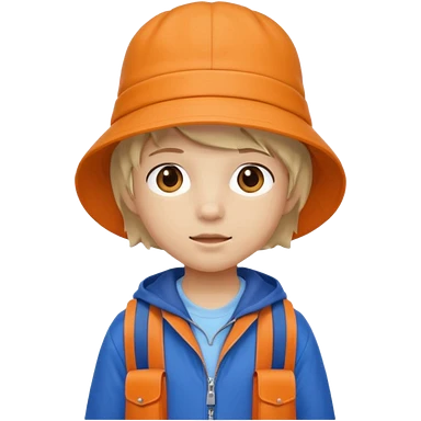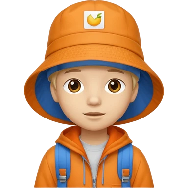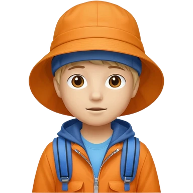A little student with bucket hat, orange jacket, blue backpack emoji