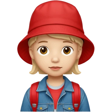 A little student with red bucket hat, jean jacket, backpack emoji