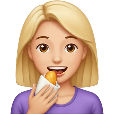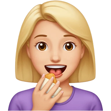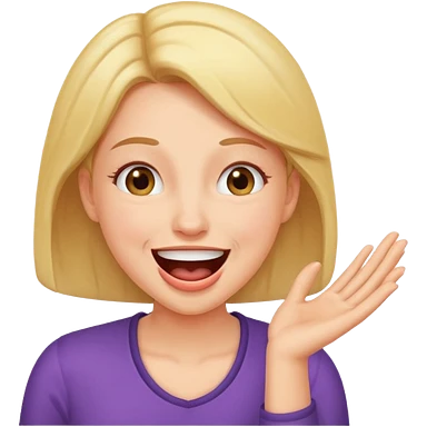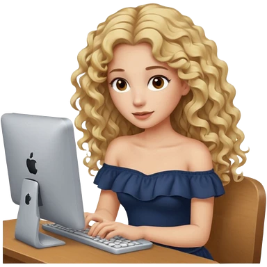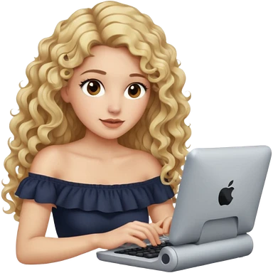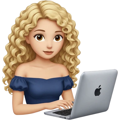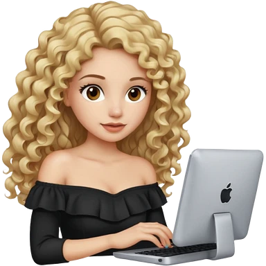 woman with long curly blond hair, brown eyes, wearing an off-shoulder top, on computer emoji