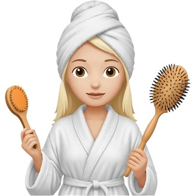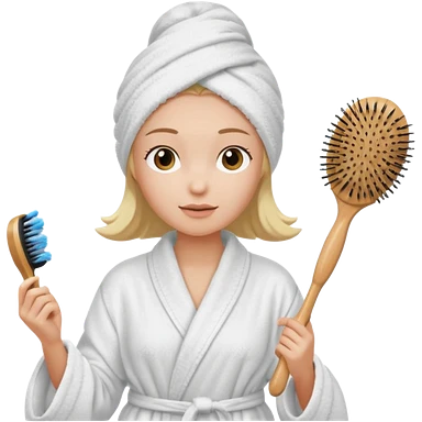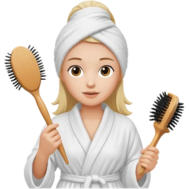 Women wearing shower robe an their hair with towel holding a brush emoji