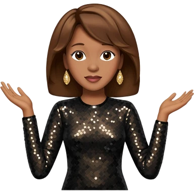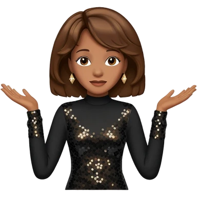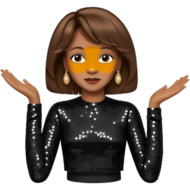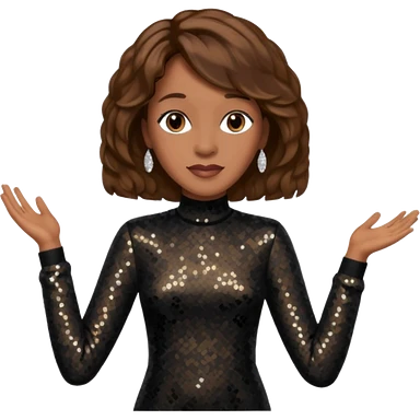 Whitney Houston with brown hair, black sequin long sleeve dress emoji