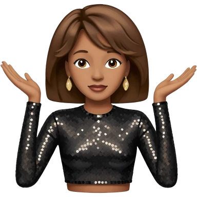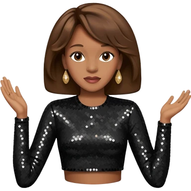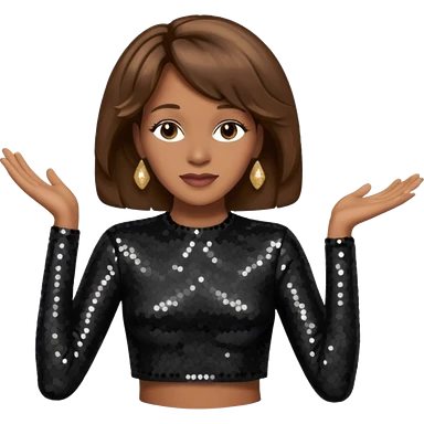 Whitney Houston with brown hair, black sequin long sleeve crop top emoji